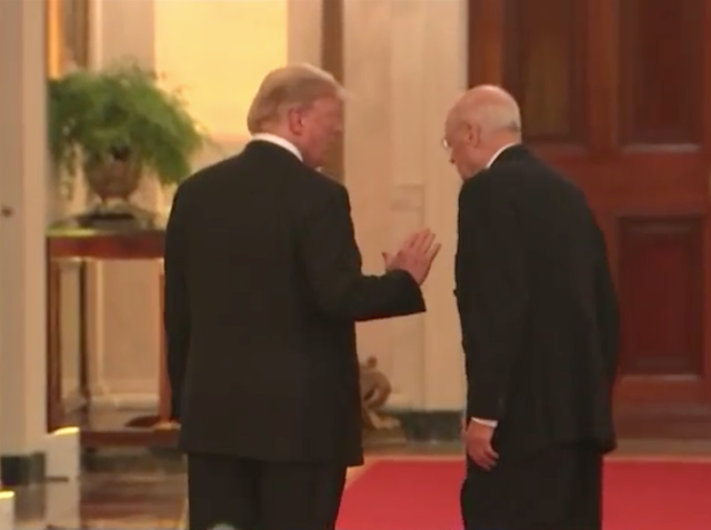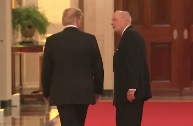 Immediately after Carney references Buckingham Palace, Trump displays a classic contempt-disgust amalgam expression (0:10 mark). Trump was directing his contempt either at members of the UK government and/or the Royal family (upon hearing "Buckingham Palace") – or at PM Carney.